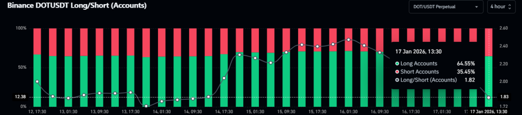 دفع هذا المزيج سعر DOT للخروج من اتجاه هبوطي مطوّل، وشهدت العملة ارتفاعًا حادًا في أوائل عام 2026. ومنذ ذلك الحين، اكتسبت DOT زخمًا، وانتقلت من التفاعل مع الأخبار إلى تقييم إمكانية استمرار الارتفاع دون وجود محفزات مستمرة.